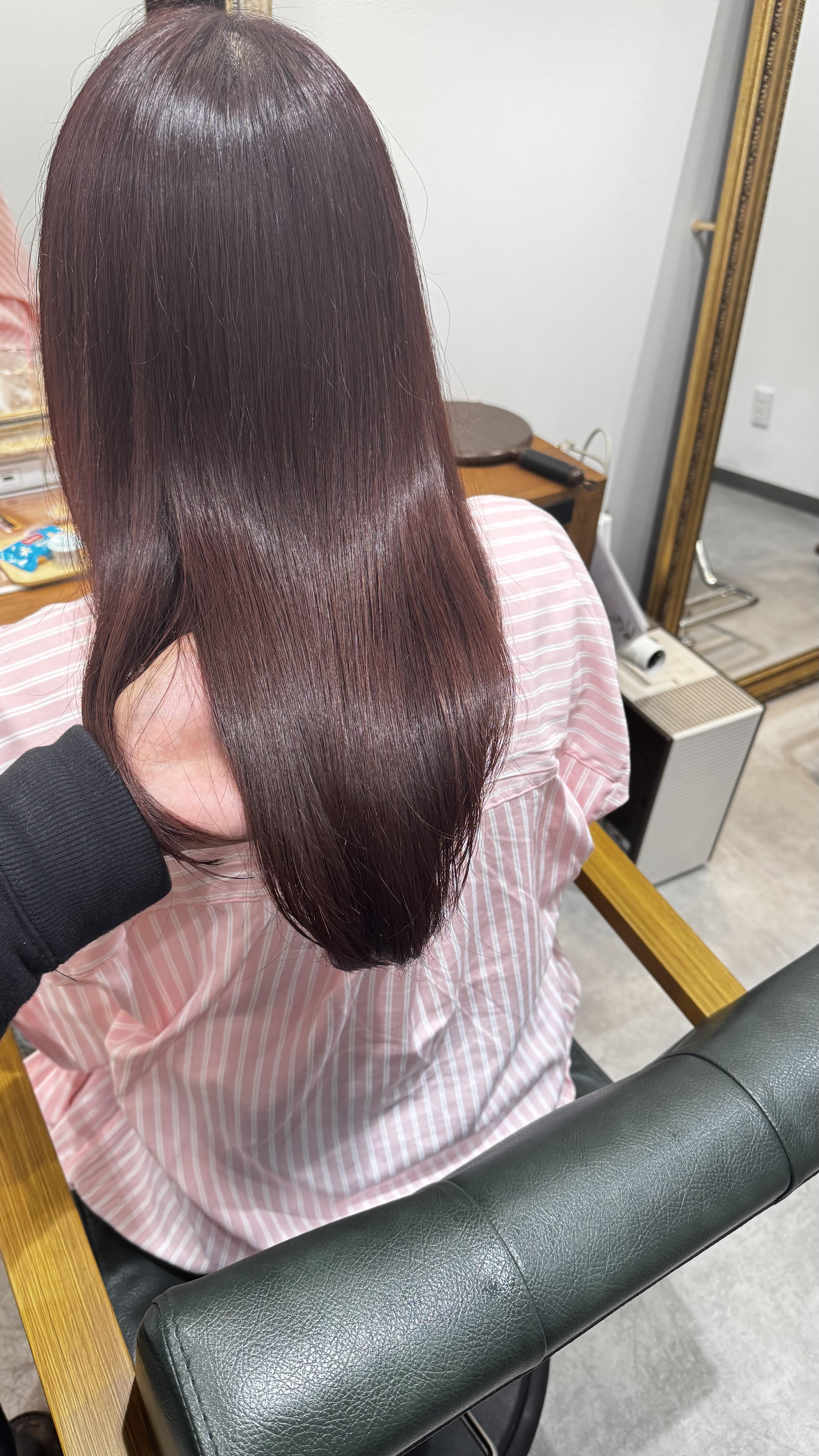 髪質改善配合の最新カラーとoggiottoのオーダーメイドトリートメント!!当店のクイックケアコースですがしっかり保湿致します!ロング料金¥1000